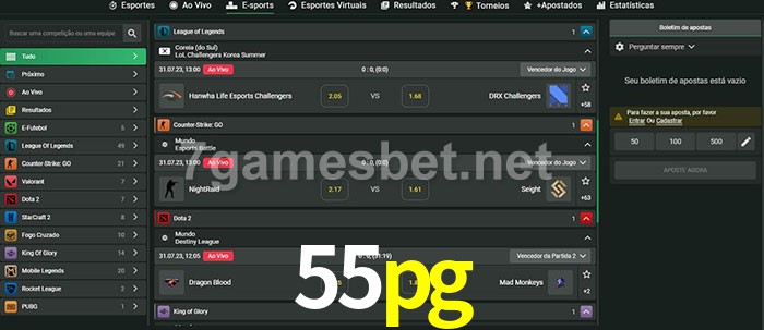 O 55pg oferece uma grande seleção de opções de apostas em e-sports com probabilidades competitivas